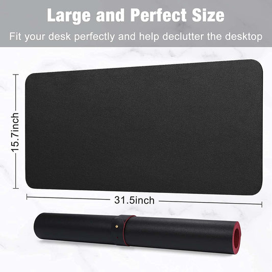 Hsurbtra Desk Pad, 31.5" x 15.7" Dual Side PU Leather Desk Mat, Waterproof Non-Slip Desktop Blotter Protector, Large Mouse Pad for Laptop Keyboard Office Home, Black and Red