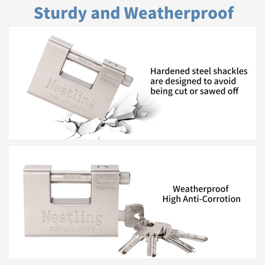 94mm Padlock with Key, High Security 5 Keys Heavy Duty 1.1 KG D-Shaped Solid Brass Outdoor Keyed Padlock - Protect Garage Door, Containers, Shed, Shutter, Gate and Warehouse