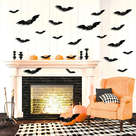 96PCS Halloween Decoration 3D Bats Wall Stickers 4 Different Sizes Realistic PVC Scary Bat Sticker DIY Halloween Window Door for Home Decoration Party Supplies