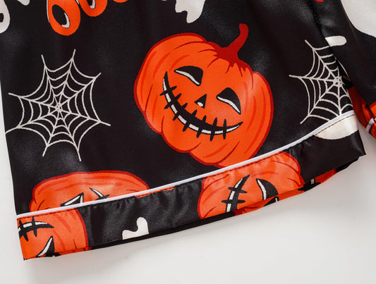 Hupohoi Unisex Girls Boys Kids Pajama Sets Button Down Satin Sleepwear Nighty 3PCS Silky Lounge Sets Nightwear Short Sleeve Long Pants, 3pcs-Pumpkin, 10