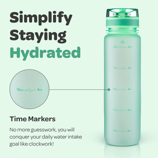 Hydracy Water Bottle with Time Marker - Large 32 oz BPA Free Gym Bottle & No Sweat Sleeve -Leak Proof Lid with Fruit Infuser Strainer & Times to Drink - Ideal for Fitness Sports & Outdoors