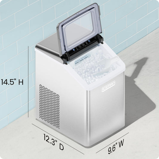 Iceman Pebble Ice Machine, Countertop Nugget Ice Maker Produces Chewable Pellet Ice in 20 Minutes, Makes 33lbs/Day, with One-Touch Cleaning Function and Ice Scoop/Basket Included – Stainless Steel