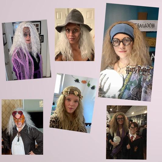 iCos Old Lady Wig - Long Curly Fluffy Dirty Silver Grey Witch Hair Wig for Grandma, Halloween Costume, Movie Cosplay, Punk Style - Adult Men & Women