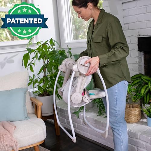 Ingenuity ConvertMe 2-in-1 Compact Portable Automatic Baby Swing & Infant Seat, Battery-Saving Vibrations, Nature Sounds, 0-9 Months 6-20 lbs (Swell)
