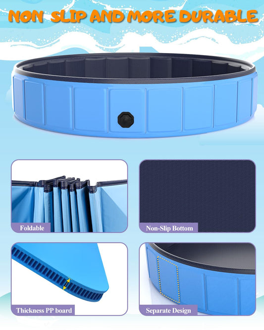 Instraella 120x20'' Extra Large Dog Pool Foldable Plastic Bathtub for Large Dogs,1mm Durable and Collapsible Pet Bathing Tub Portable Outside Swimming Pool for Kiddie and Dogs