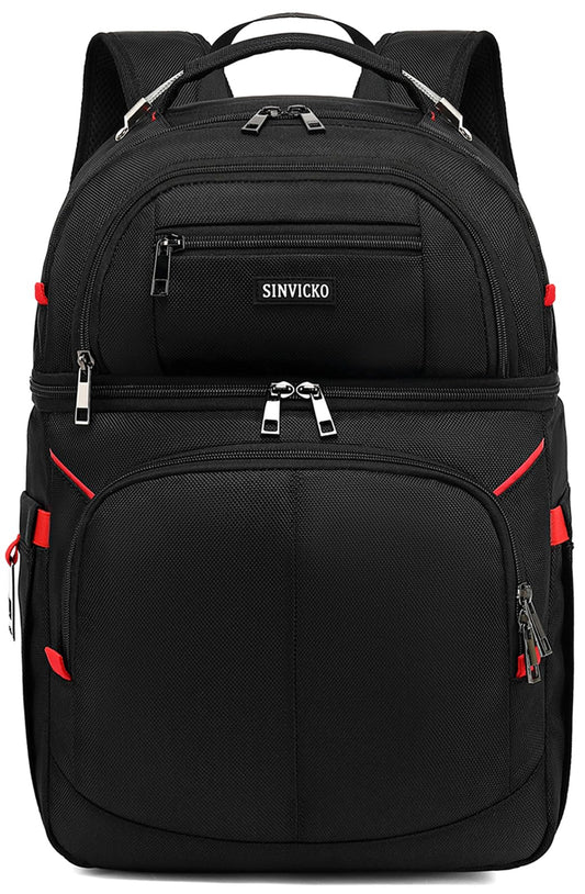 Insulated Cooler Backpack,Double Deck Leak Proof Cooler Bag,Insulated Backpack Cooler Lunch Backpack for Men Women,Black & Red