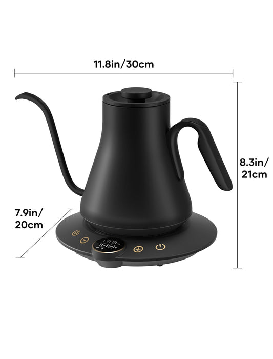 INTASTING Gooseneck Electric Kettle with ±1℉ Temperature Control for Pour Over Coffee & Tea, Quick Heating, BPA-Free Stainless Steel, Built-in Brew Timer, 1500W/0.9L (Ebony Black)