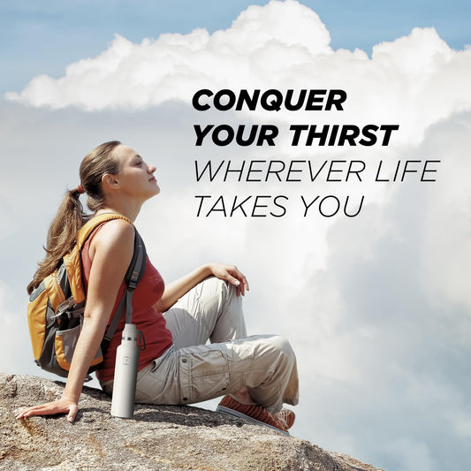 IRON °FLASK Camping & Hiking Hydration Canteens - 3 Lids (Narrow Spout Lid) Leak Proof Vacuum Insulated Stainless Steel - Hot & Cold Double Walled Sports Water Bottle - Cashmere Cream, 24 Oz