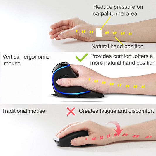 J-Tech Digital Wired Ergonomic Vertical USB Mouse with Adjustable Sensitivity (600/1000/1600 DPI), Scroll Endurance, Removable Palm Rest & Thumb Buttons [V628]