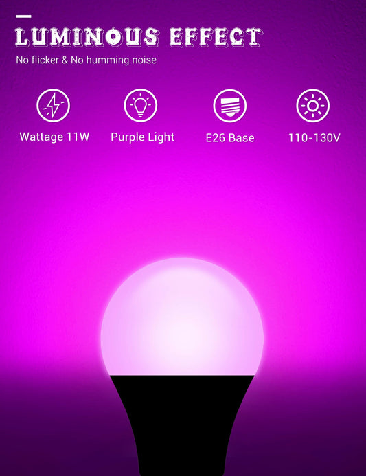 JandCase Halloween Orange Purple LED Light Bulbs Outdoor, [4 Pack] Orange Purple Halloween Light bulb 9W(60W Equivalent), E26 Base A19 LED Color Light Bulb, Halloween Decoration, Non-Dim
