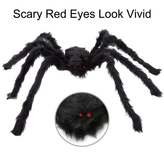 JAMIEWIN Giant Spider for Halloween Decoration 2 Pack, 55 inch Large Hairy Fake Spider Props, Scary Halloween Spider Decoration Outdoor Indoor House Party Yard