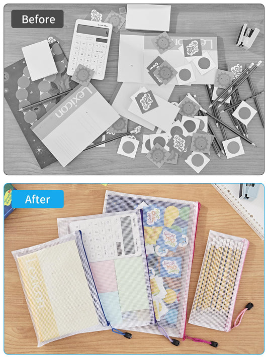 JARLINK 18 Pack 8 Sizes Mesh Pouch, 9 Colors, Waterproof Zipper Bags Document Multipurpose Travel Bags for Office, School, Board Game, Puzzles, Cosmetics, Travel Accessories, and Home Organization