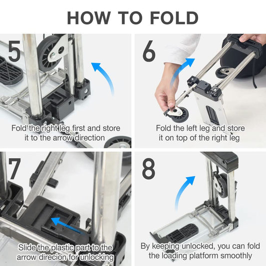 Japard Folding Carrying Cart, Luggage Cart with 2 Wheels One Way, Compact for Travel Small Mini Trolley for Light Duty School Business Bungee Cord