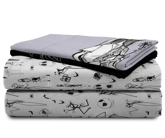 Jay Franco Kids Sheet Set with Fitted, Flat Sheets & Pillow Cover - Ultra-Soft Bedding with Pillowcase for Room Decor, White - Nightmare Before Christmas, 4 Piece Queen