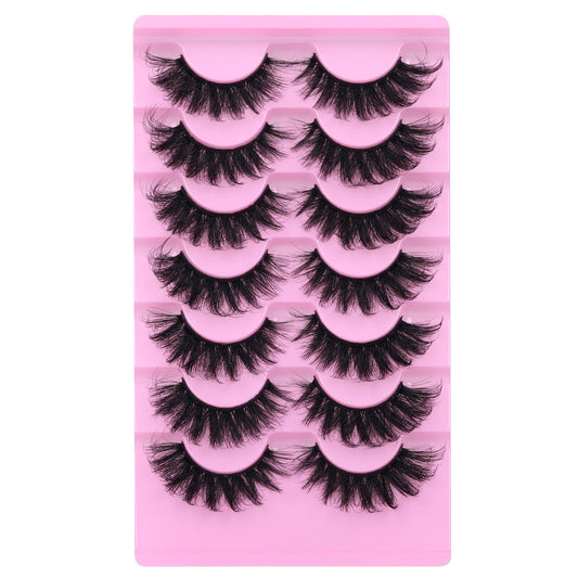 JIMIRE Faux Mink Lashes Fluffy Volume False Eyelashes Pack Dramatic Natural Look Wispy Cat Eye 18MM Fake Lashes 7 Pairs
