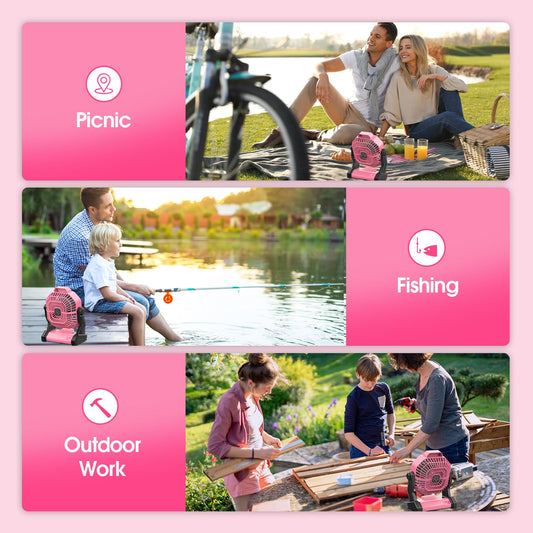 JINLICTE Camping Fan with LED Lantern, 20000mAh 9-inch Rechargeable Battery Operated Portable Tent Dual Motor, Quiet and Strong Wind, Hang Hook, Perfect Outdoor USB for Picnic, Barbecue, Fishing