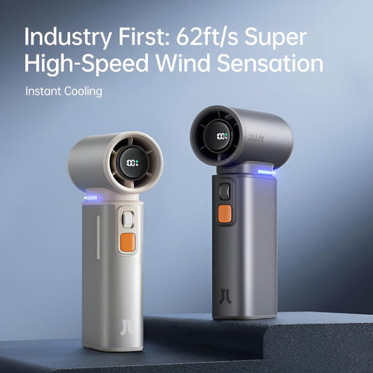 JISULIFE Portable Handheld Turbo Fan, 100 Speeds Adjustable Mini Personal Fan, 9000mAh USB Rechargeable Battery Operated, LED Display, Metal Shell with Accessories Gifts for Men Women Travel- Grey