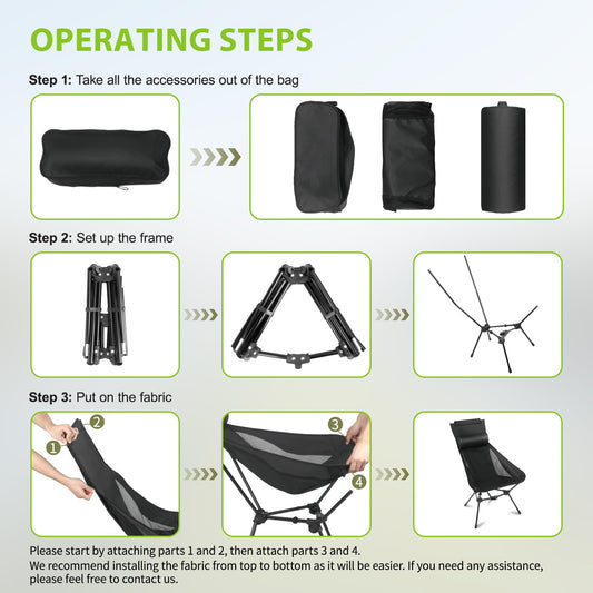 JITOOW Camping Chairs, Portable Camping Chair with Headrest and Storage Bag, Lightweight Foldable Chair for Outside Camping, Hiking, Travel, Beach and Sports
