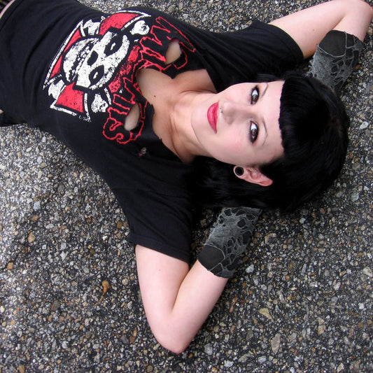 JISEN Women Punk Fingerless Gloves Ripped Cosplay Gothic Mittens for Halloween Costume Party E-Black