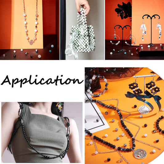 1080pcs 8mm Glass Beads 24 Color Black Bracelet Beads Round Crystal Glass Bead Marble Rosary Loose Bead for Bracelet Necklace Jewelry Making Supplies Women Men Halloween Eid Mubarak Ramadan Decoration