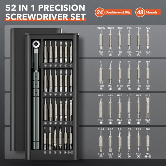 JOREST 52-IN-1 Precision Screwdriver Set, Mini Repair Tool Kit with Torx for Macbook, Computer, Laptop, iPhone, PS5, Xbox, Switch, Glasses, Watch, Ring Doorbell, Electronic, Small Gift Gadget for Men