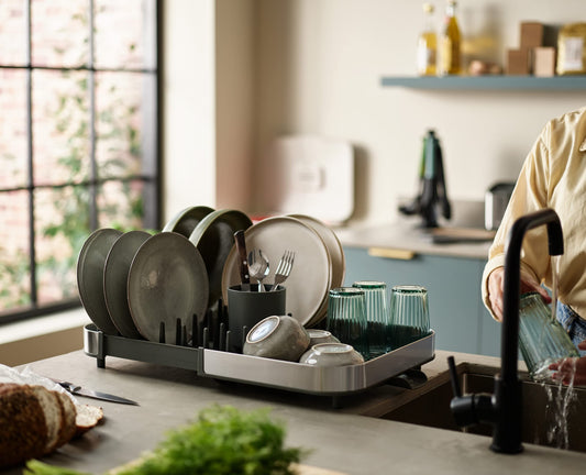 Joseph Joseph Extend Expandable Dish Drainer Rack with Removable Cutlery Holder Swivel Draining Spout – Grey