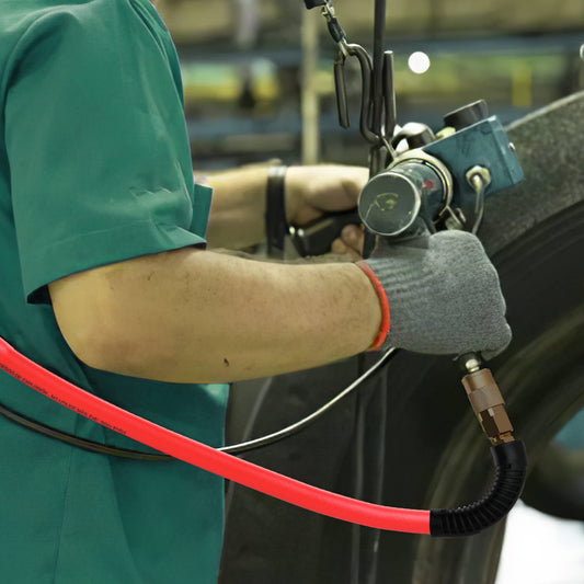 JOROY Hybrid Air Hose, 3/8-Inch by 100 Feet Air compressor Hose,Heavy Duty, Lightweight, Kink Resistant, All-Weather Flexibility with 1/4-Inch Brass Air Coupler and Plug, 300 PSI
