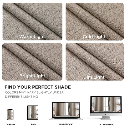 Joydeco Blackout Curtains for Bedroom - Natural Linen Curtains 52" W x 84" L (Pack of 2), Thermal Insulated 100% Blackout 2 Panels Linen Rod Pocket & Back Tabs Light Blocking Drapes for Living Room