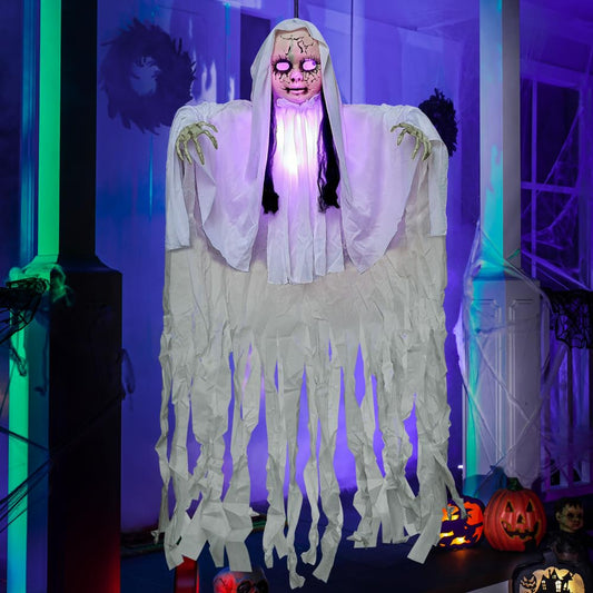 JOYIN 43" Outdoor Halloween Decoration, Scary Girl Hanging Ghost Decor Sound Activated with Light-up Head for Yard, Patio, Haunted House Lawn Garden