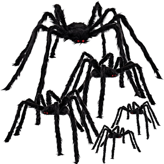 JOYIN 4 Packs Halloween Outdoor Decorations Spider Set, Scary Large Spiders for Halloween Decor Outside, Indoor Party Decor Haunted House Prop, Yard Lawn Garden Decoration, Black (60" 36" 24" 24")