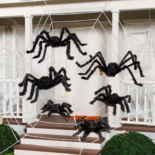 JOYIN 6 Packs Halloween Outdoor Decorations Giant Spiders Set, Halloween Decor Outside, Black Hairy Large Spider with Different Size for Lawn, Yard Decor (30", 30", 20", 20", 12", 12")