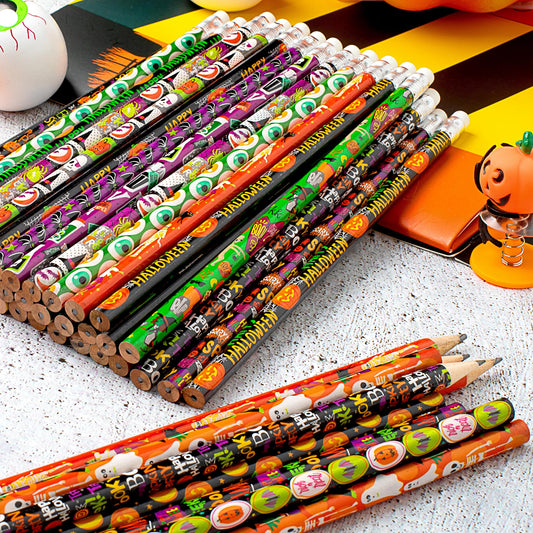 JOYIN 48PCS Halloween Pencils Bulk with Eraser, Colorful Fall Pencil Assortment, 12 Design Halloween Themed Stationery Set for Kid Girl Boy Trick or Treating Party Favor Supplies, Classroom Gift Prize