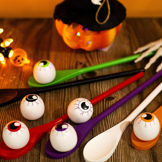 JOYIN Halloween Egg and Spoon Race Game Set; 6 Eyeballs and Spoons with Assorted Colors for Kids Adults Halloween Outdoor Fun Games, Party Favor Supplies, Classroom Activities