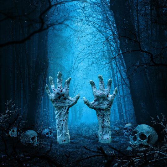 JOYIN Bloodstain Zombie Arm Stake Groundbreaker Halloween Outdoor Decoration Realistic Looking Fake Arm Hands Yard Stakes for Halloween Haunted House Yard Decoration
