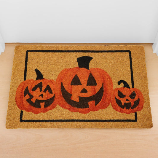 JOYIN Halloween Decoration Pumpkin Patterned Doormat, 30”x 17” Non Slip Natural Coir Front Door Mat Doorway Rugs, Trick or Treat Outside Indoor Decor