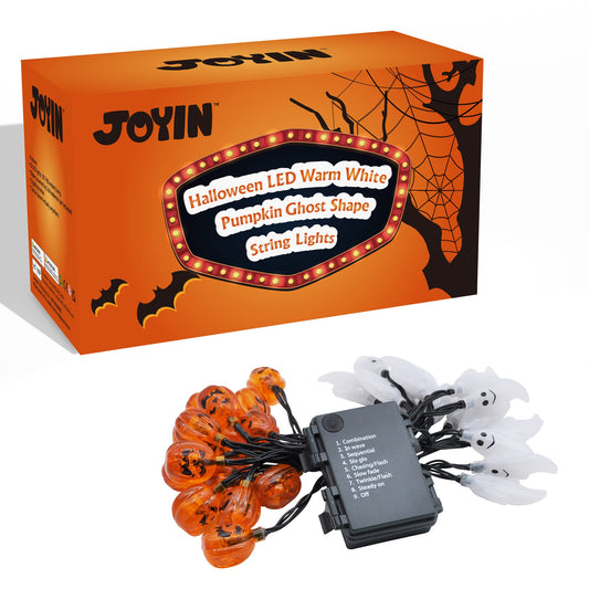 JOYIN Halloween String Lights Decorations, 19.7FT 30 LED Battery Operated Ghost Pumpkin 3D String Light with 8 Lighting Modes for Home Indoor Outdoor Halloween Party Decor(Orange/White Color)