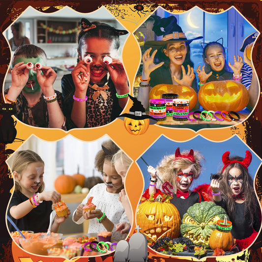 JUNEBRUSHS 42pcs Halloween Party Favors Silicone Bracelets Rubber Wristbands for Halloween Party Decorations Accessories Trick or Treat Goodie Bag Stuffers Fillers Supplies(7 Designs)