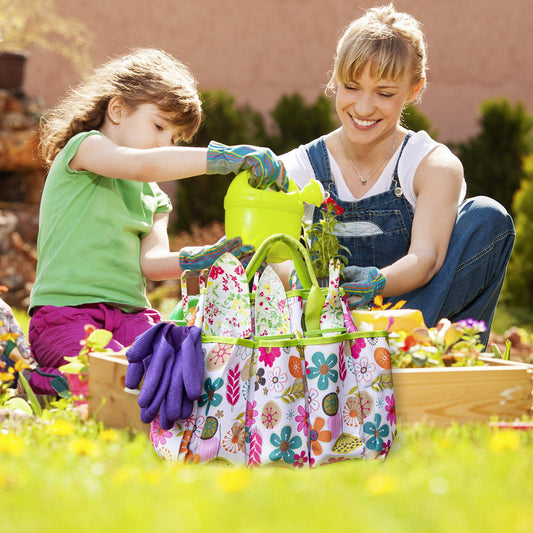 JUMPHIGH Floral Garden Tools Set, 11 PCS Heavy Duty Gardening Tools Includes Hand Trowel Rake Weeder Pruner Sprayer, Gardening Gifts for Women, Garden Kit with Storage Tote Bag and Garden Gloves