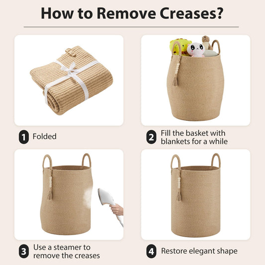 Jute Rope Laundry Hamper Basket by YOUDENOVA, 58L Tall Laundry Basket, Baby Nursery Hamper for Blanket Storage for Bedroom-Large-Jute