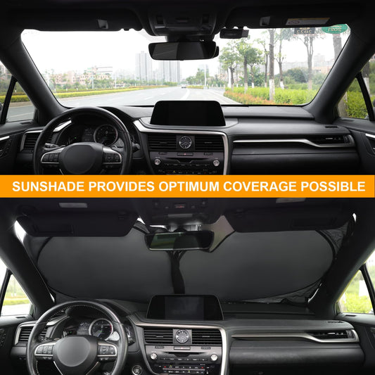 JUSTTOP Car Sun Shade Windshield - Foldable Sun Car Window Shield 210T Coated Silver Cloth Reflective Polyester Material Blocks 99% UV Rays, Fits Most Windshields(Large63 x 35 in)
