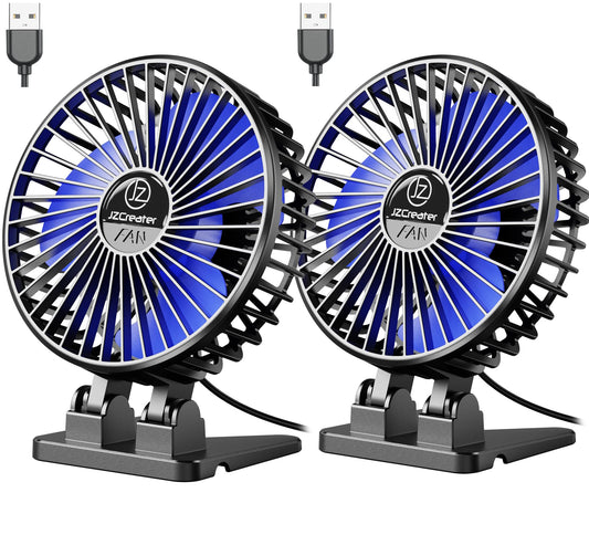 JZCreater USB Desk Fan, Mini Portable Fans, 3 Speeds Desktop Table Cooling Fan, Plug in Power, Rotation Strong Wind, Quiet Personal Small for Home Office Travel Bedroom, Black Blue