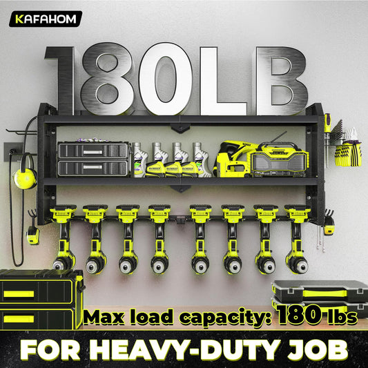 KAFAHOM Power Tool Organizer with Charging Station.Garage 8 Drill Holder Built in 8 Outlets Power Strip,Tool Storage Shelf Wall Mount,Tool Battery Organizer with Screwdriver/Hammer/Air Tool Rack