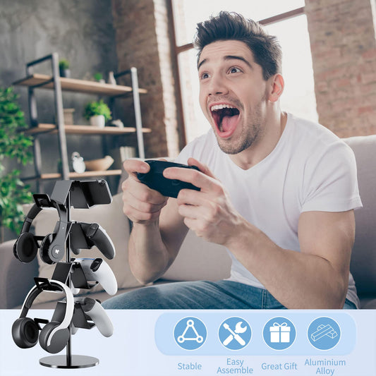 Karanava Controller Holder 4 Tier,Headphone Stand - Adjustable Headset Holder for Xbox PS5 PS4 Switch Pro - Gaming Storage for Universal Game Accessories,Desk/Floor(Black)