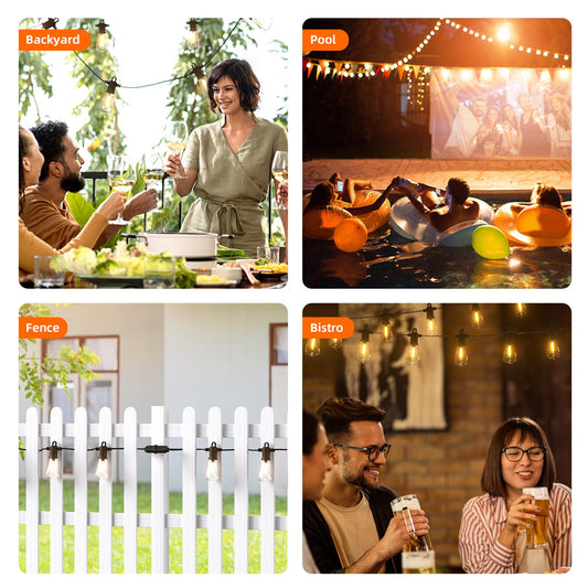 Kawaya 50FT Outdoor String Lights - Outside LED Patio Light with 25+2 Shatterproof Vintage Edison Bulbs - 2700K Dimmable IP65 Waterproof Hanging Lighting for Yard Porch Deck Balcony Bistro Cafe Party