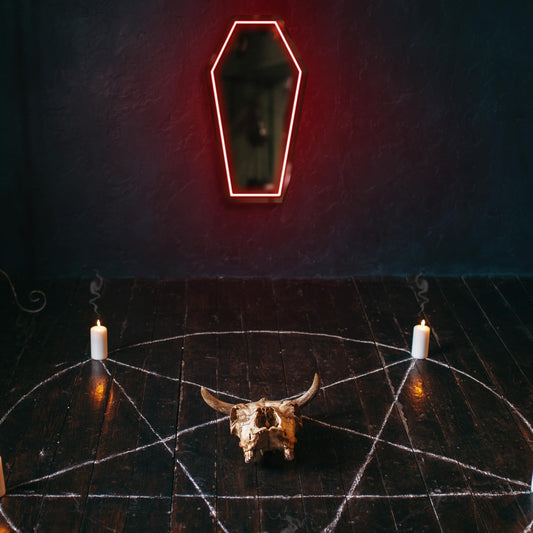 Kavaas Neon Coffin Mirror 16.9" x 9.6", Gothic LED Light Mirror Sign for Gothic Room Decor, Living Room, Bedroom, Bar - Best Gifts for Goth Lovers, Halloween Neon Signs Wall Art, Christmas