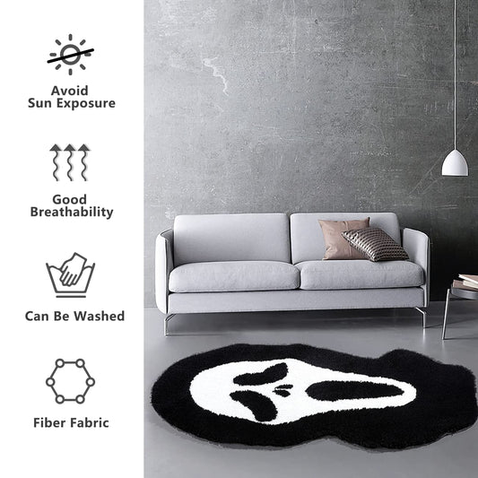 Kaupuar Large Skull Bath Mat Fluffy Black Bath Rugs Soft Plush Non-Slip Bathroom Rug Mats Halloween Decorative Welcome Doormat Washable for Toilet, Bedroom, Living Room, 22" x 43"