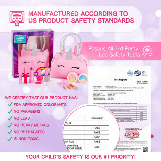 Kids Real Makeup Kit for Girls with Pink Unicorn Purse, Non Toxic Washable Make Up - Unicorn Toys for Toddler & Birthday Gifts for Girl Ages 3 4 5 6 7 8 9 10 Years Old - Pretend Play Vanity Set