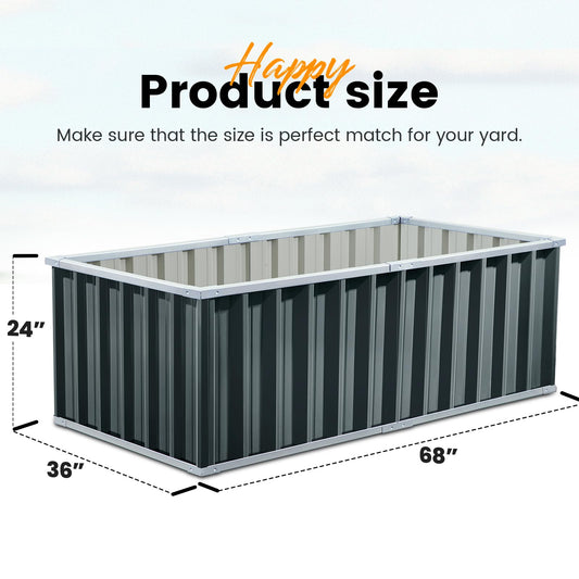 KING BIRD Raised Garden Bed 68" x 36" x 24" Heightened Galvanized Steel Metal Planter Box Outdoor for Deep-Rooted Vegetables, Flowers, Large Raised Bed Kit (Dark Grey)