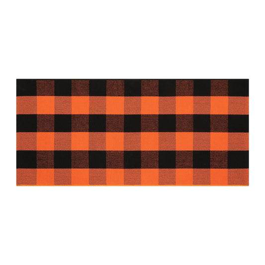 KIMODE Fall Outdoor Rug Buffalo Plaid Orange and Black 24"x51",Washable Cotton Fall Halloween Door Mat,Reversible Checkered Layering Rugs for Entryway,Halloween Front Porch Decor