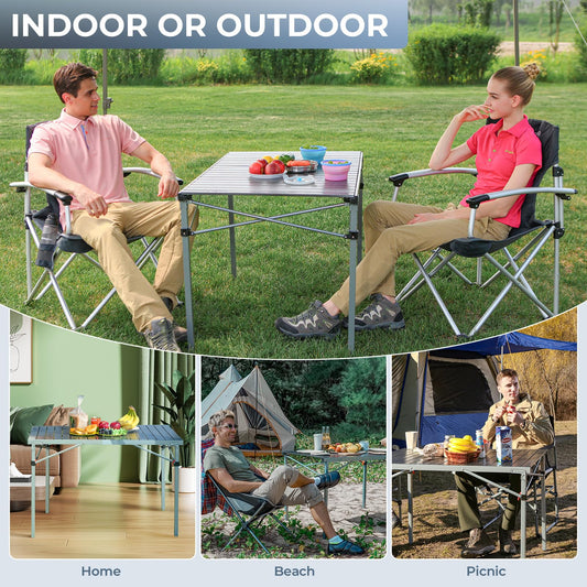 KingCamp Aluminum Folding Lightweight Roll Portable Stable Table for Camping Picnic Barbecue Backyard Party, Indoor & Outdoor, Oversize, Silver Black
